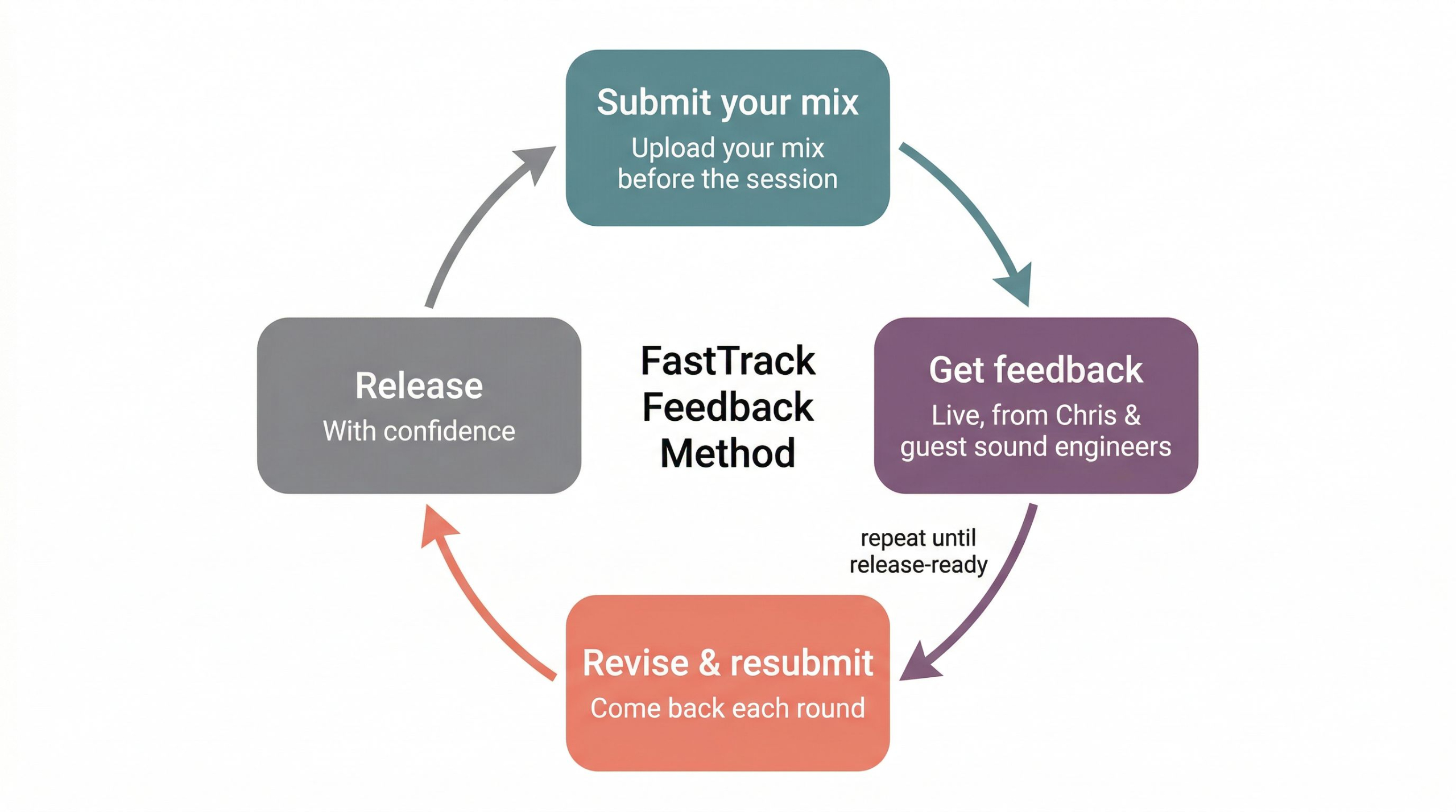 Four times a year, with dedicated feedback sessions and multitrack downloads you keep forever.
